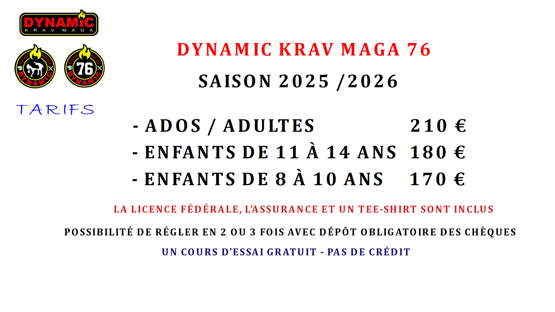 Tarifs 2025 / 2026